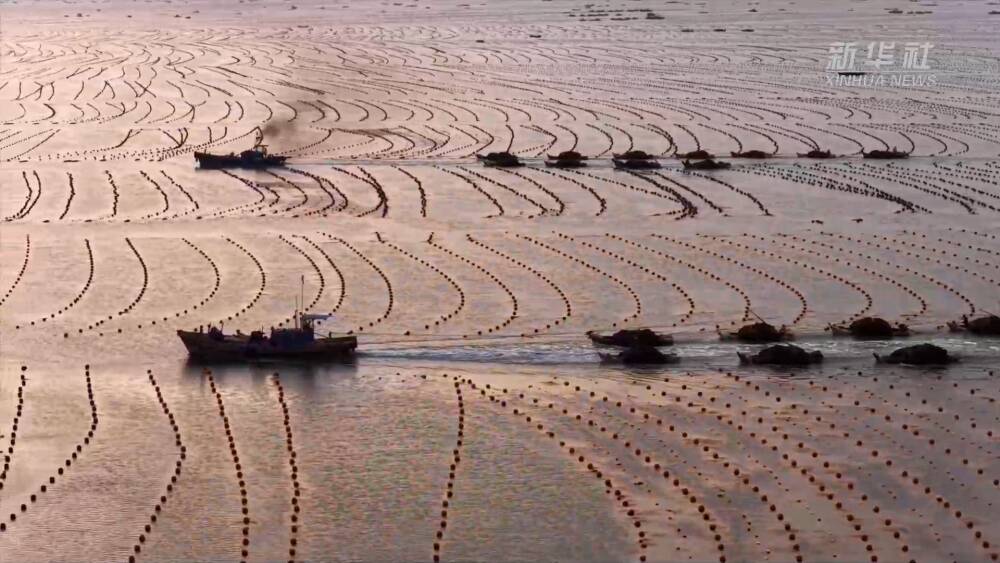 近日,山东省荣成市爱伦湾海洋牧场海带养殖区一派繁忙景象,养殖户对近岸养殖区达到成熟标准的海带分批及时收割,为后期收割的海带留出生长空间,以便提高海带的产量和质量。