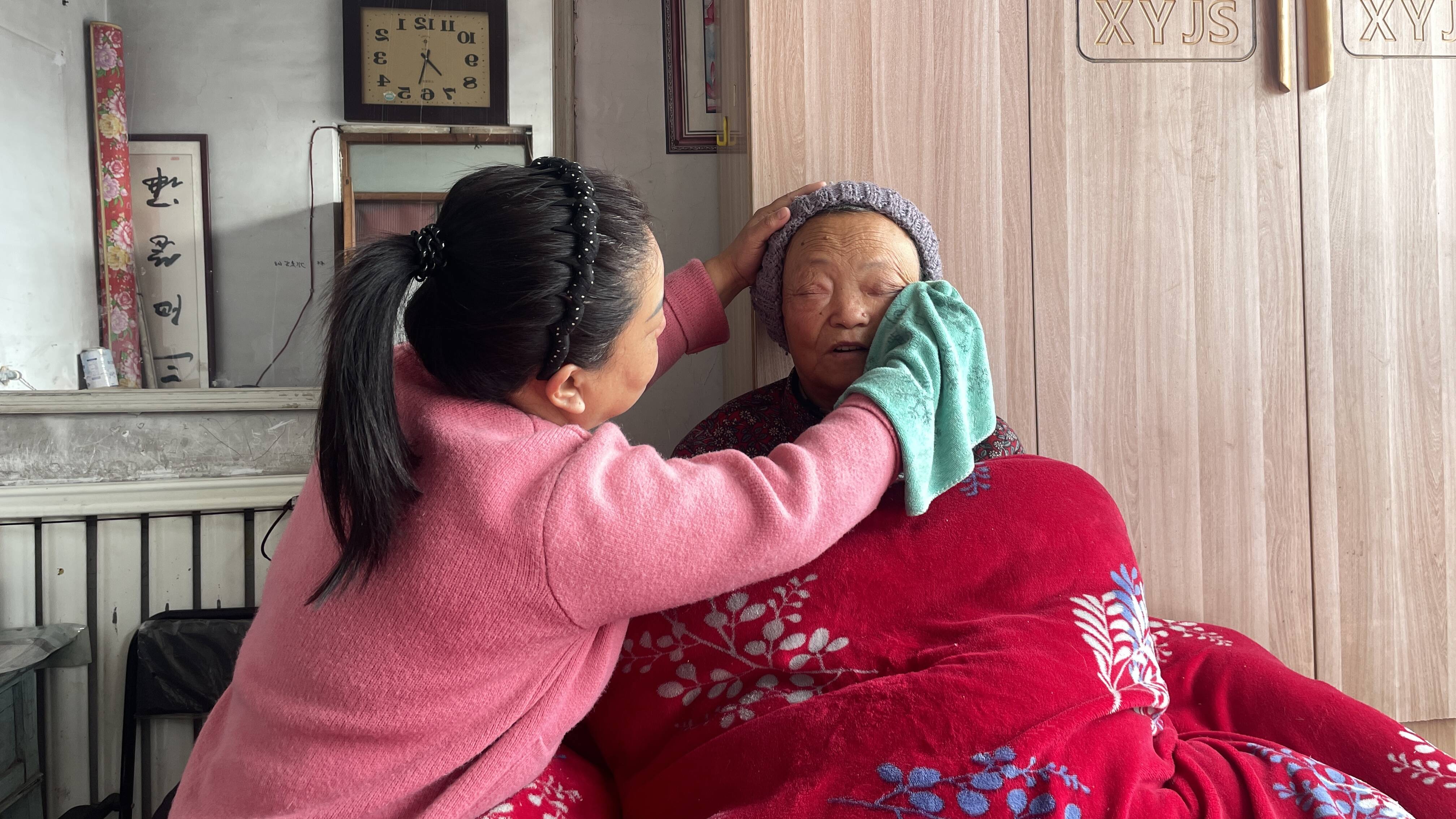 “在我们小的时候,她们也是这么照顾我和红强的。”伺候两位母亲的吃喝拉撒,李秀丹从不嫌脏,换洗衣物、擦洗身体,她总是轻柔细致。