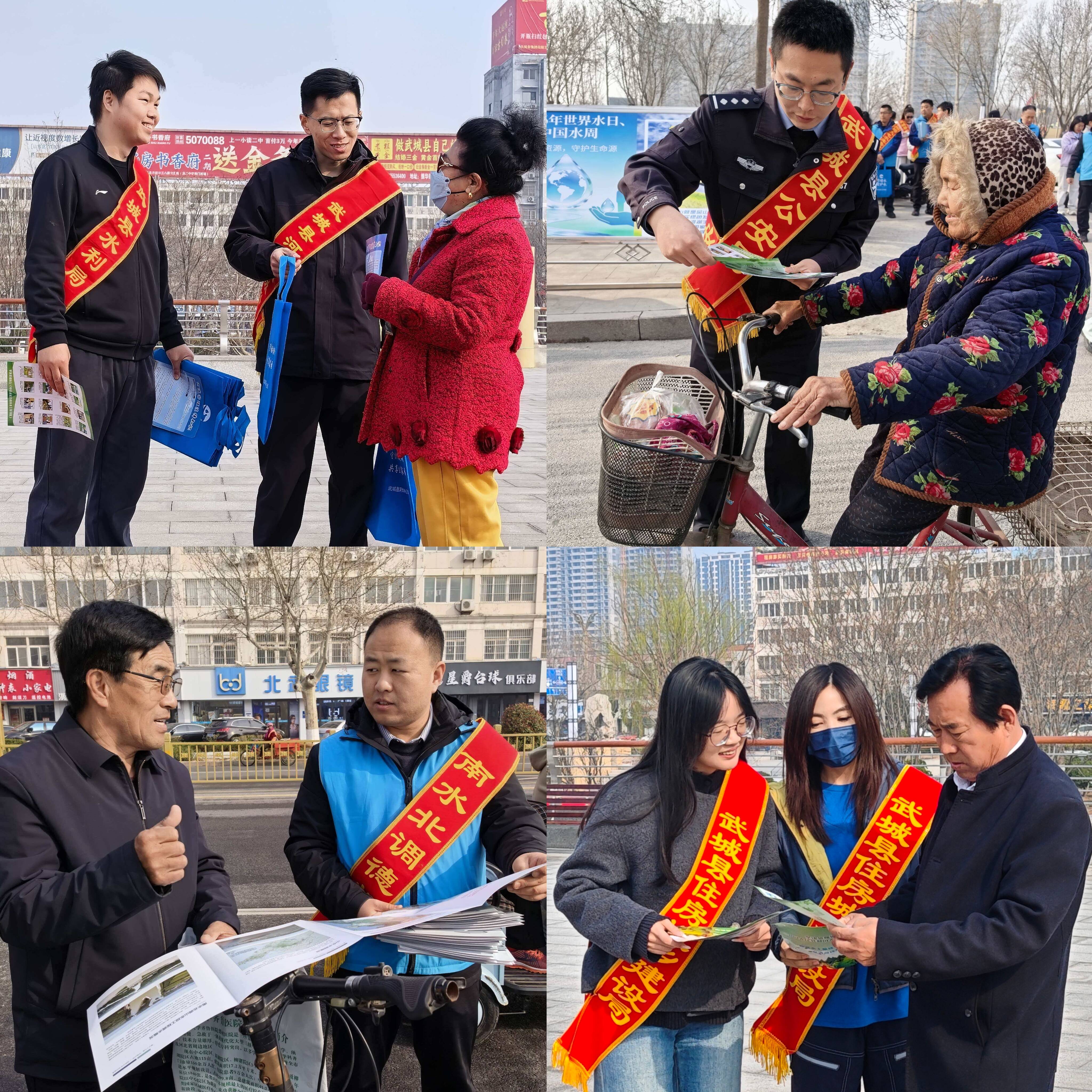 3月20日,武城县升平广场迎来主题集中宣传活动。活动现场多部门联动发力,打造水利普法与群众互动的连心阵地。广场周边标语高悬,宣传台整齐排列,系列展板全方位展示涉水法律法规、河湖长制工作成效、幸福河湖建设成果与节水护水常识。工作人员向过往群众发放宣传折页、海报与实用文创,面对面解读《节约用水条例》《河长制湖长制工作条例》等核心法规,细致解答河湖管护、饮水安全等民生疑问,手把手传授家庭节水小妙招。