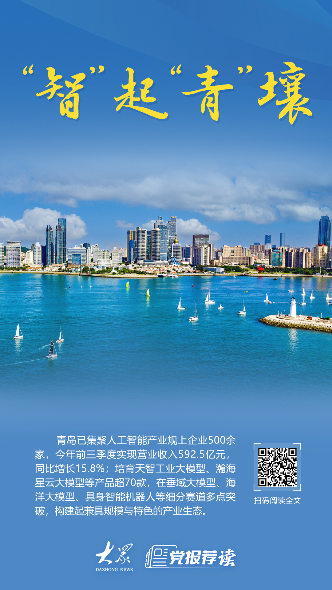青岛集聚人工智能产业规上企业500余家,培育大模型产品超70款