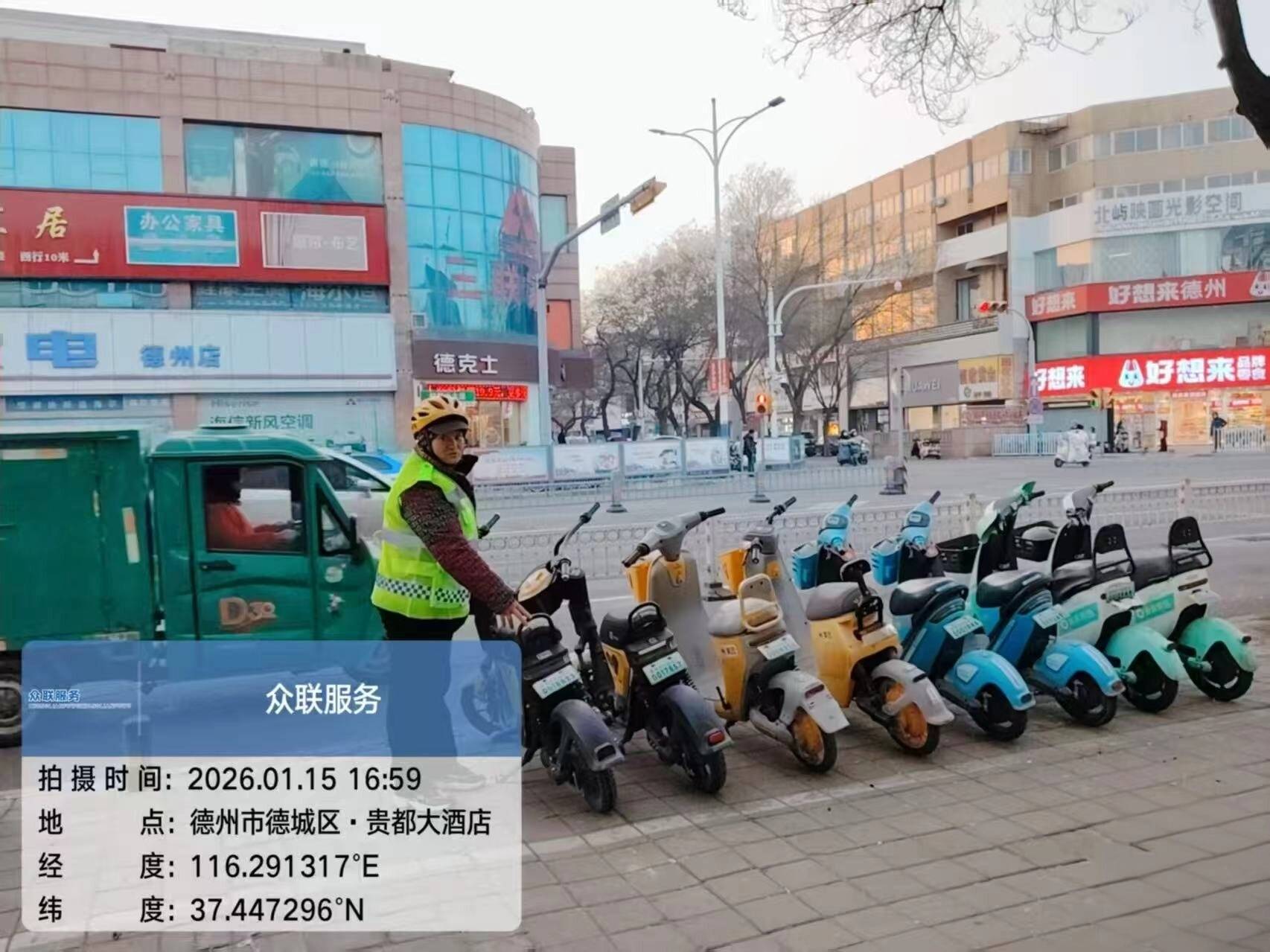 为破解这一困局,在德城区城管局的指导协调下,四家共享单车企业摒弃竞争壁垒、凝聚共治共识,共同出资组建德州众联车辆服务有限公司。这家成立于2025年3月13日的共管企业,承载着规范行业秩序、优化城市环境的重要使命,创新推出“统一调度、集中摆车、协同清运”的运营模式,将分散的运维力量整合升级,变“各自为战”为“攥指成拳”,为共享单车治理提供了系统性解决方案。