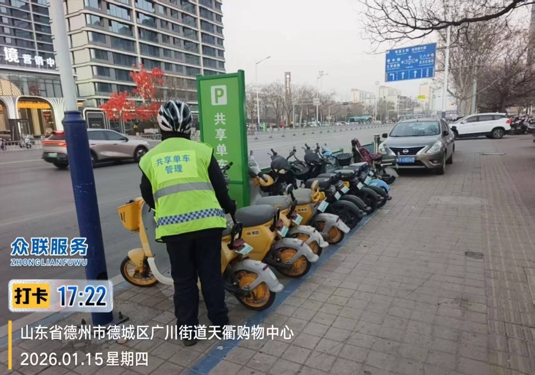 “以前下班路过公交站,共享单车能从人行道摆到非机动车道,走路都得绕着走;现在不管什么时候来,车辆都整整齐齐停在划线区域里,看着就舒心。”家住德城区的市民李女士的感受,正是德州众联成立后城市街面变化的生动写照。
