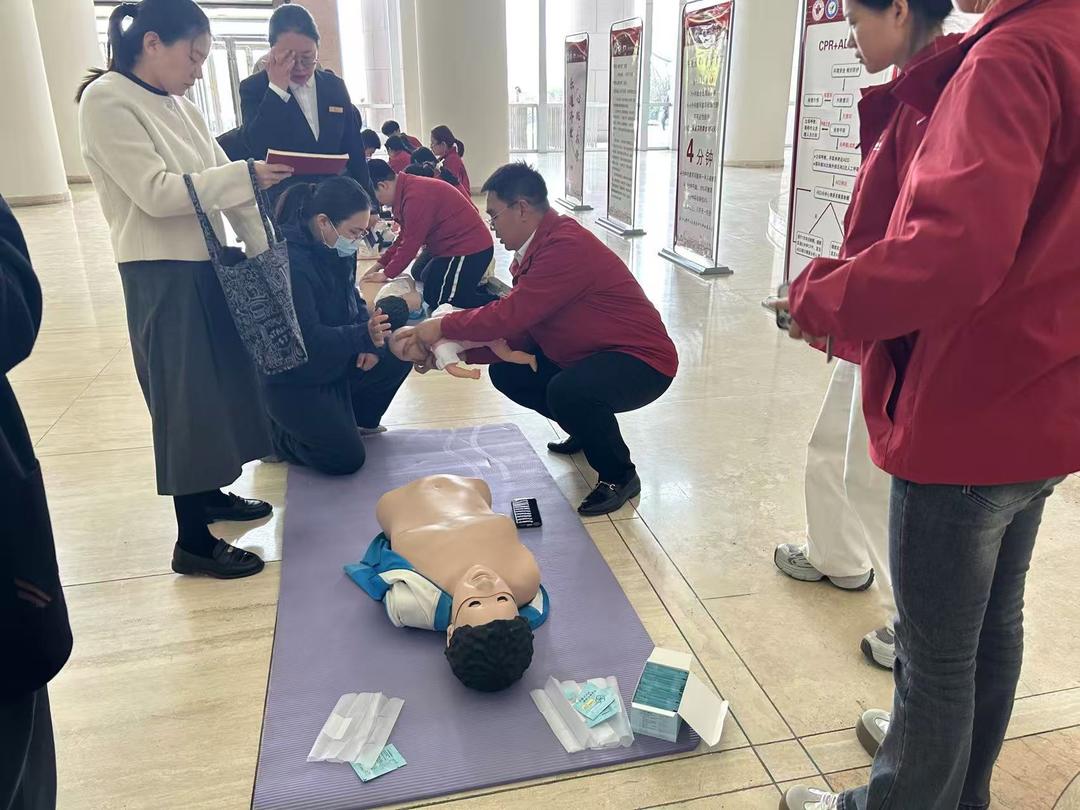 “遇到有人晕倒,轻拍双肩呼唤,检查意识和呼吸……”“胸外按压要有力,每分钟约120次……”会场外,来自山东第二医科大学“军桥心跳行动”的志愿者们现场演示急救流程。许多观众认真学习、上手演练,并按照志愿者提示打开小程序,搜索附近的AED急救设备。