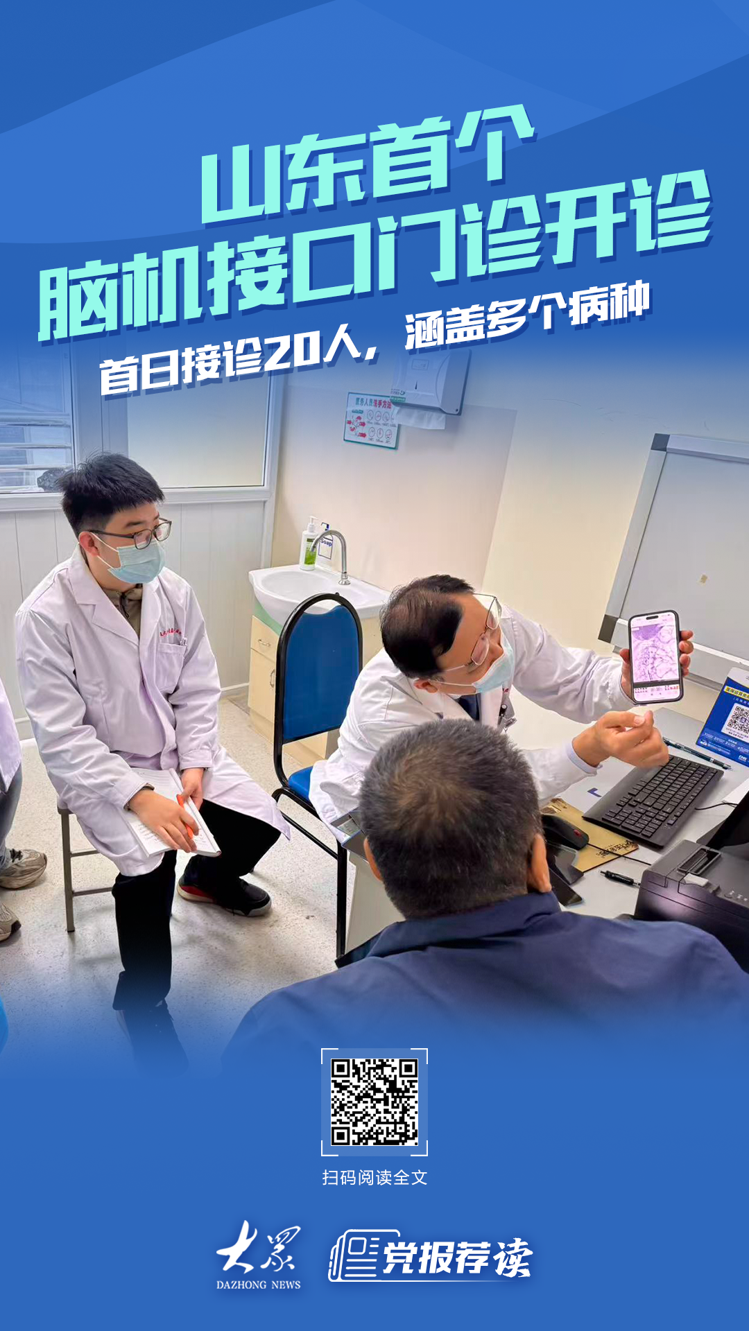 4月3日,山东首个脑机接口门诊在康复大学青岛中心医院正式开诊。20个预约号,两天前就已全部约满。上午7时许,门诊走廊外就已经有患者等候。