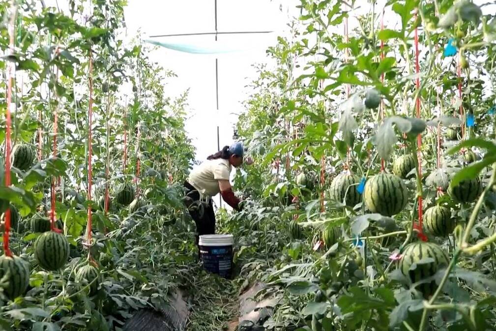 走进王凤楼镇柴家庙村的现代化温室大棚,清甜的瓜香扑面而来,翠绿的瓜藤上,一个个圆润饱满的西瓜掩映在绿叶间,甚是喜人。种植户手持剪刀,小心翼翼地将成熟的西瓜剪下,大棚内一派丰收繁忙的喜人景象。