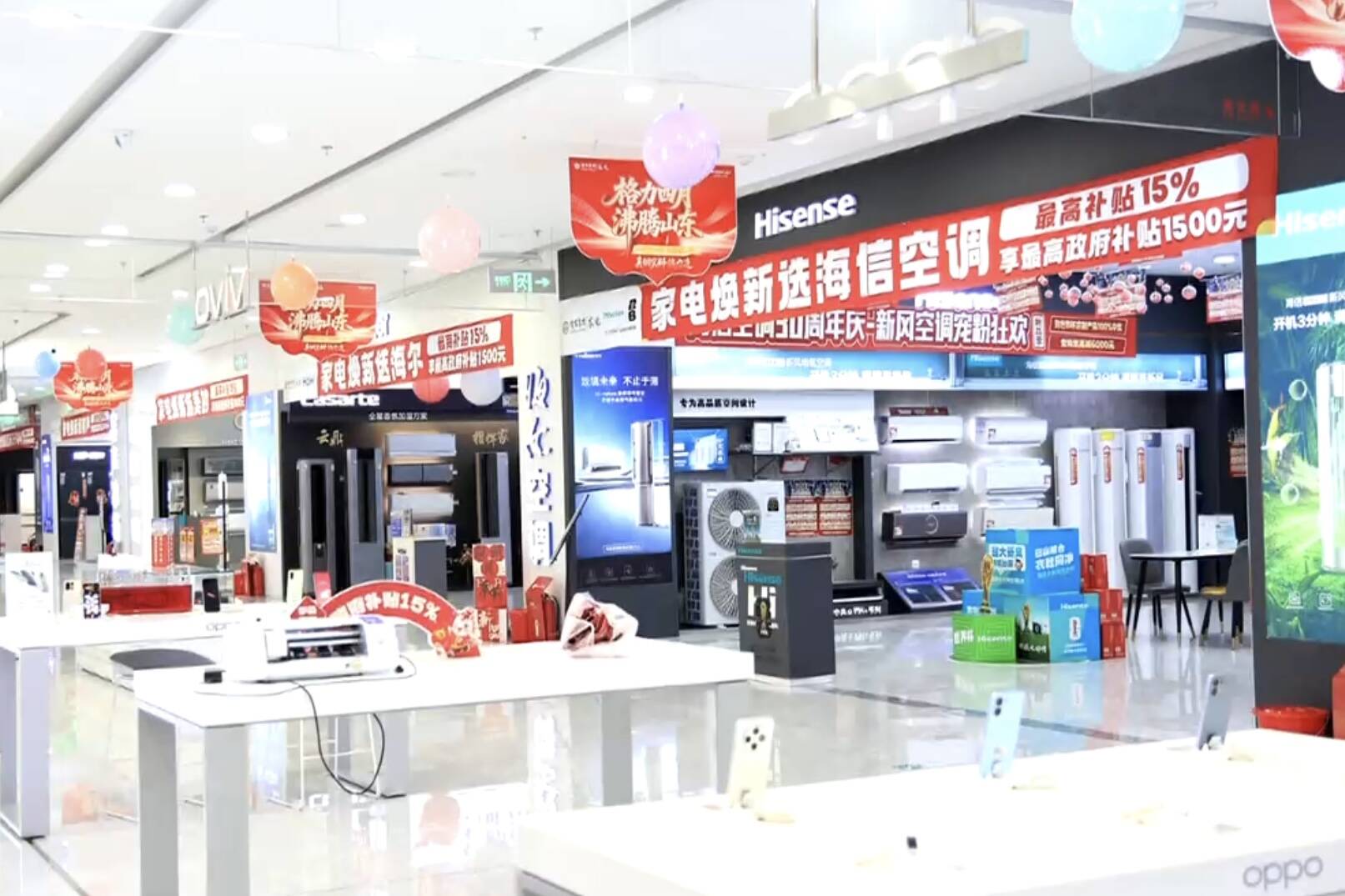 “天气越来越暖和了,准备给家里老人添置一台空调。根据国补,还有家电补贴,我看中一款空调,原价3400多块钱,然后补贴完之后,2800多块钱,价格比较合适,我也比较满意,空调也比较智能,有新风功能,对老人孩子都比较好。”顾客陈海涛说。