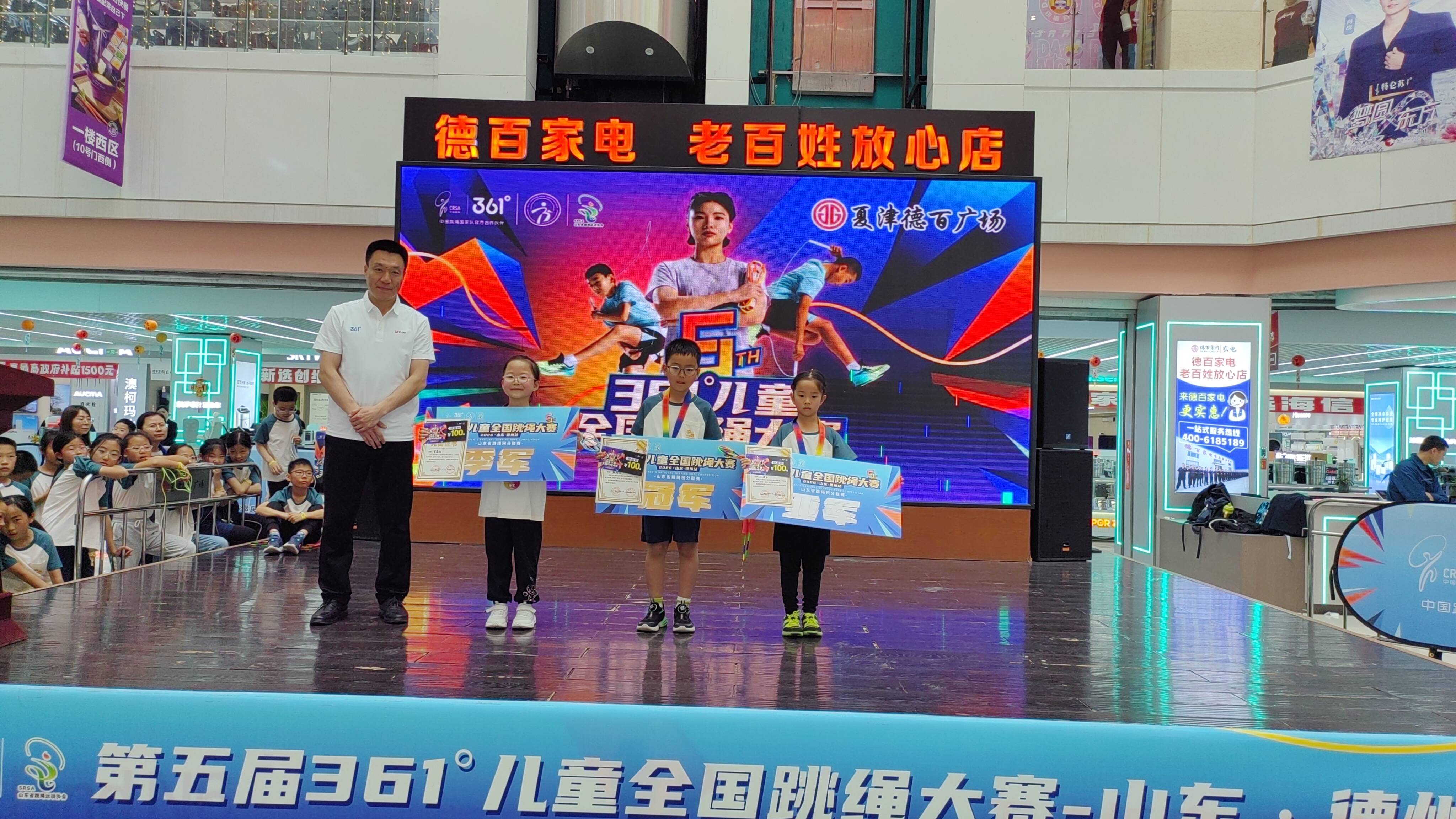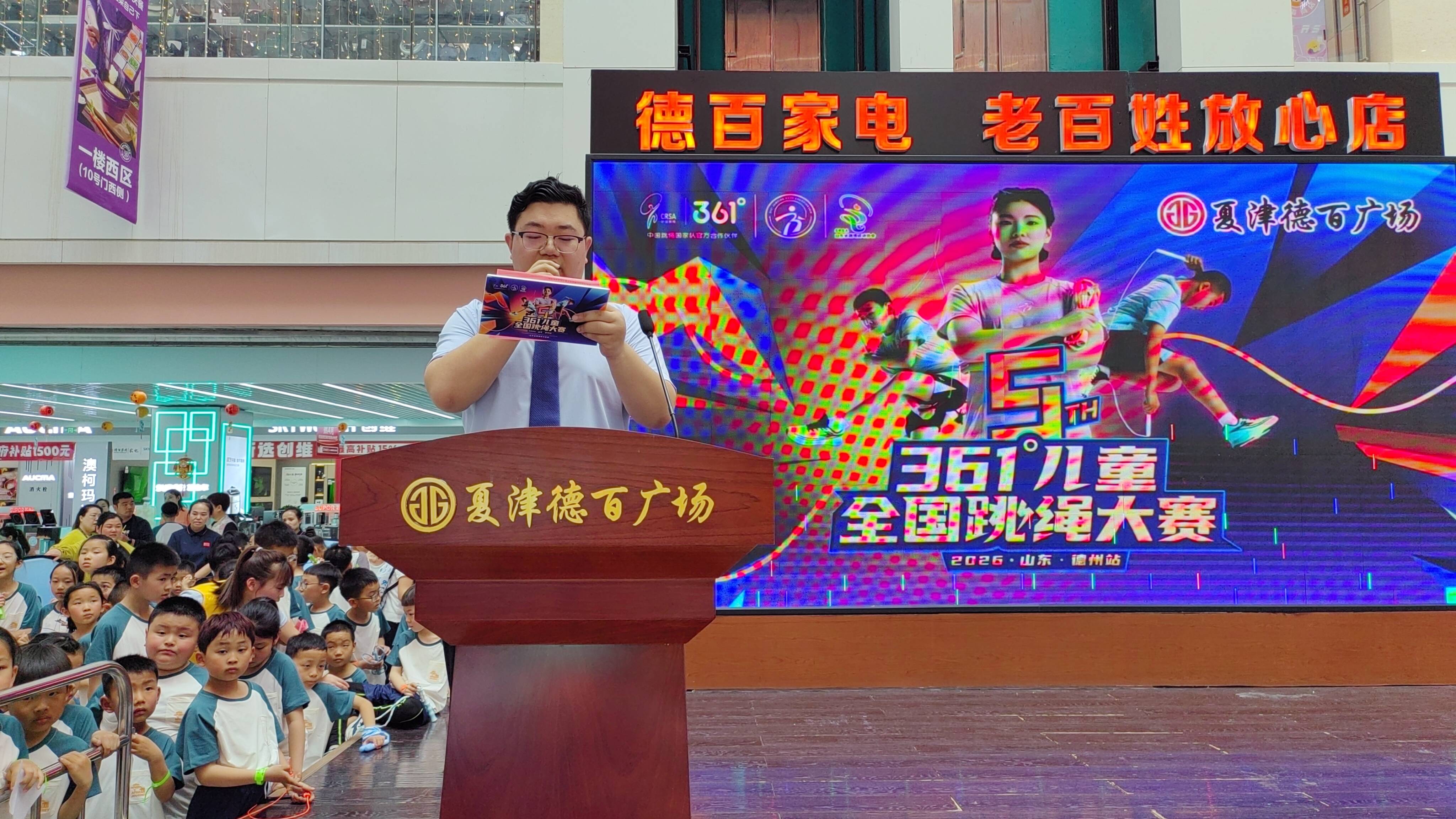 大略网·奏嘛新闻4月12日讯 4月11日,夏津德百广场热闹非凡。由夏津县体育总会、夏津德百广场联合361°儿童共同举办的361°全国儿童跳绳大赛在此盛大开幕。夏津县体育中心副主任、县体育总会副主席张祖宝,夏津德百广场总经理马天雨等出席开幕式。