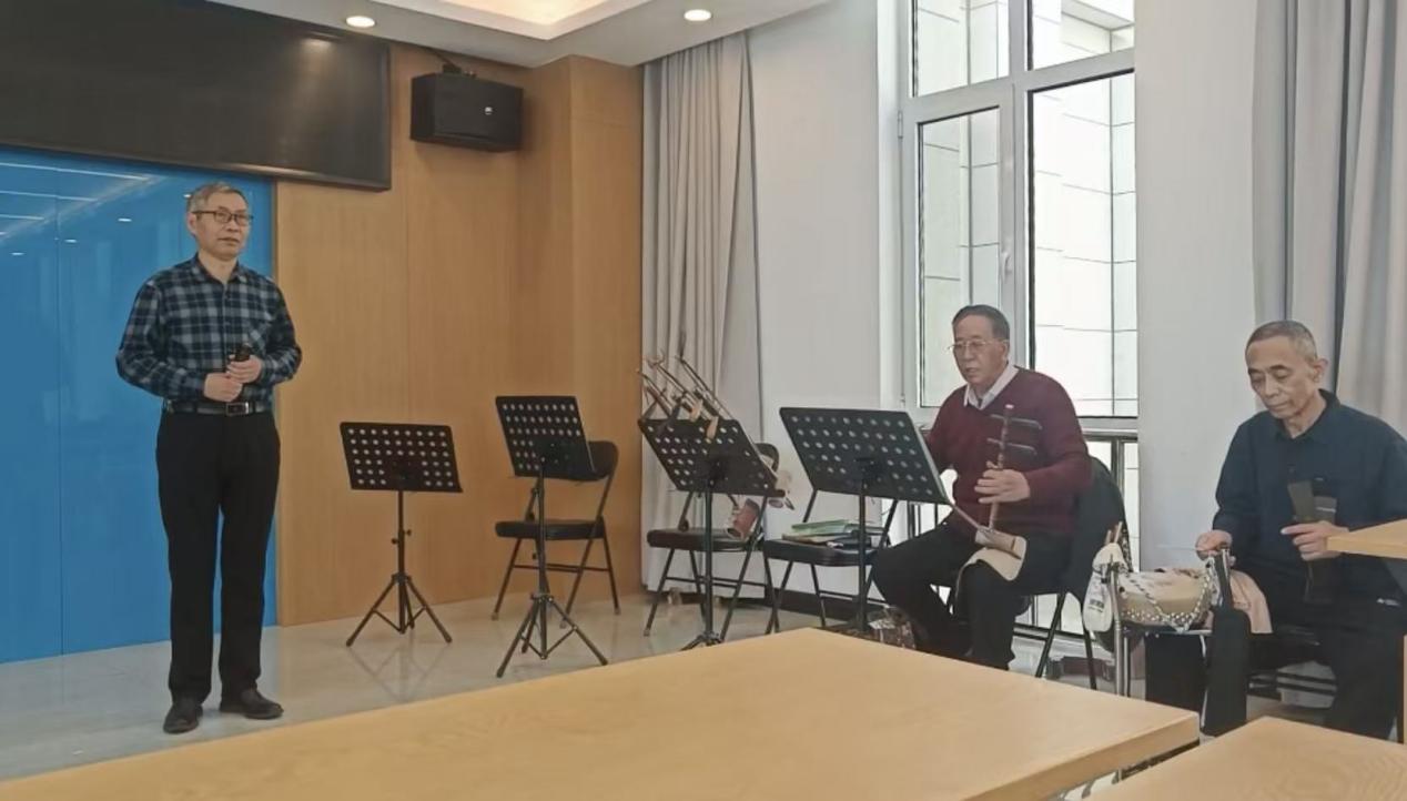 活动现场,京胡悠扬、鼓点铿锵,京剧社成员们精神饱满、各展所长。有人手持话筒字正腔圆地演唱经典选段,有人端坐一旁娴熟演奏京胡、板鼓等乐器,配合默契、韵味十足。从唱腔咬字到身段手势,大家相互切磋、悉心指导,在一遍遍的练习中打磨技艺,在一句句的唱词里感受京剧艺术的深厚底蕴。