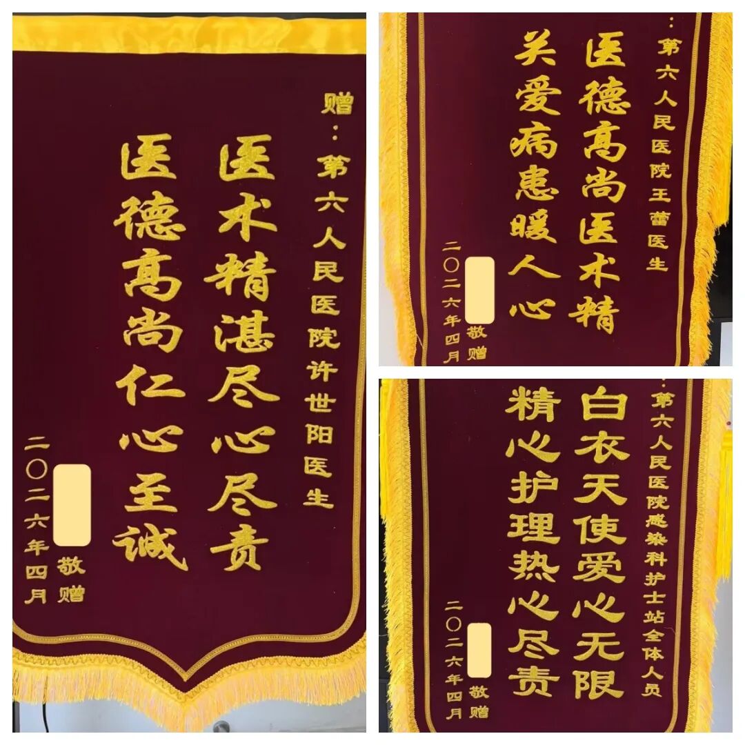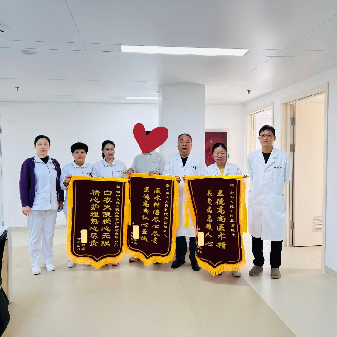 经过一段时间的系统治疗,王先生现已康复。为表达对医护人员的感激之情,王先生特意定制了多面锦旗,分别赠予许世阳、王蕾及科室全体护理人员。锦旗上的真挚话语,字字句句承载着王先生对医护人员深深的敬意与感谢。