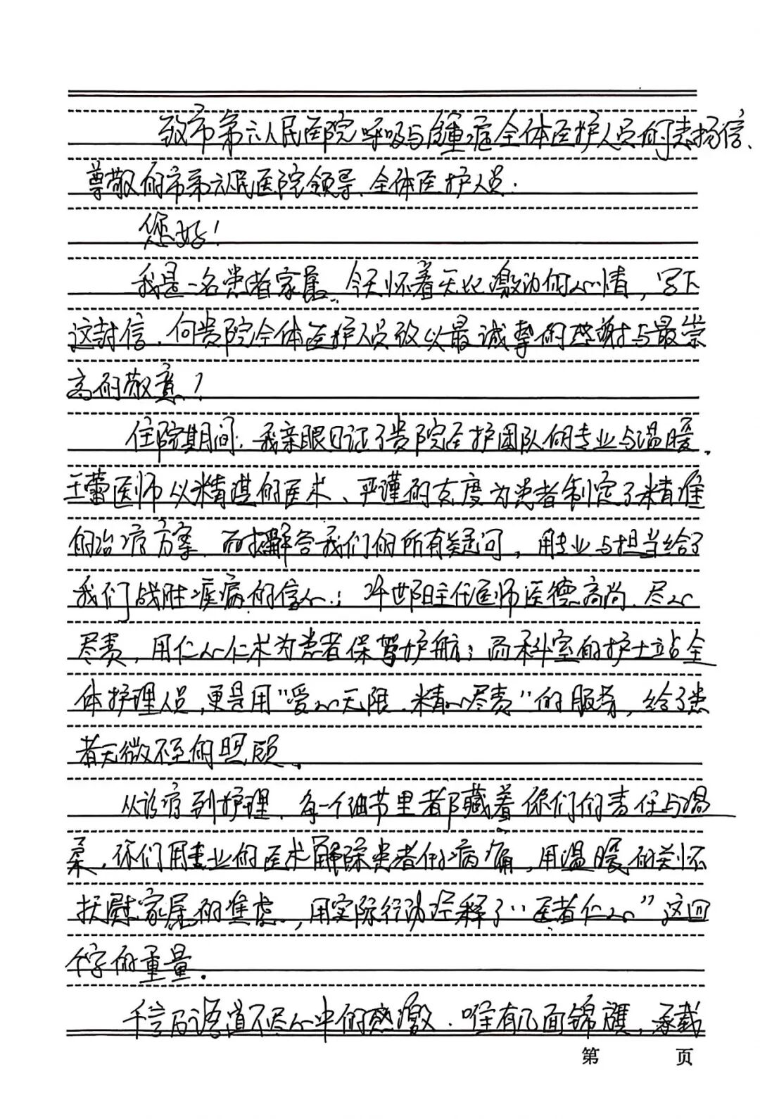 在感谢信中,王先生写道:从治疗到护理,每一个细节里都承载着你们的责任与温柔。你们用专业的医术缓解患者的病痛,用温暖的关怀抚慰家属的焦虑,用实际行动诠释了“医者仁心”。