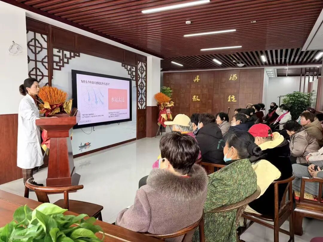 本次活动特邀我院老年病科赵玉芬副主任医师主讲,围绕春季“寒包火”、倒春寒防护等核心内容,科普养生要点,现场传授居家食疗去火、降压穴位按摩、简易养生呼吸法,内容通俗易懂、实操性强,深受居民好评。