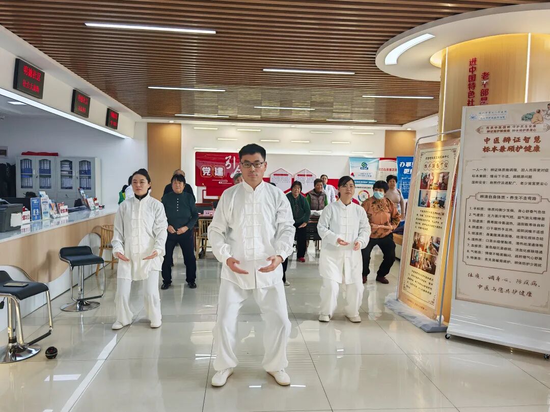 养生区飘散着淡淡药香,居民们在药师指导下,亲手制作冬季防感、安睡香囊。养生茶饮品鉴区则准备了多款适合冬季饮用的养生茶,供居民免费品尝。现场还展示了多种中药饮片及精致的中医药周边产品。八段锦教学区,居民们在专业医师带领下练习八段锦功法,亲身感受传统养生功法的魅力。